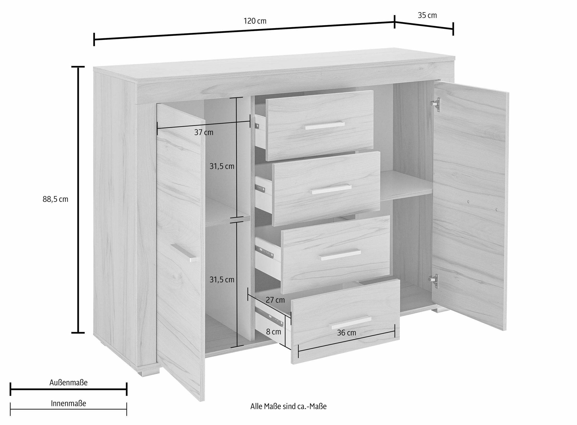 Wilmes Sideboard Breite 120 Cm 2 Turen Und 4 Schubkasten Online Kaufen Otto